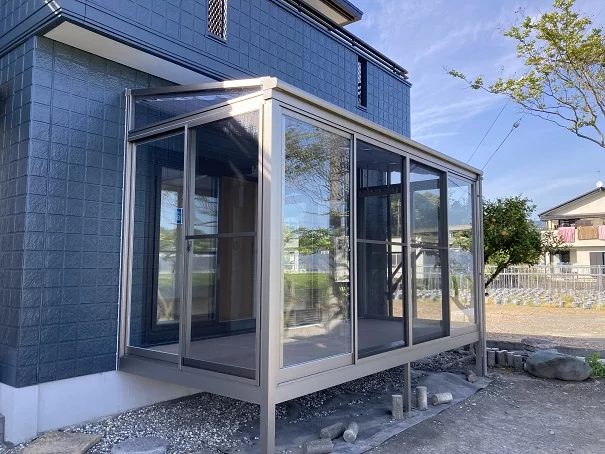 縁側部分まで居室を移動させ、新たにサンルームを設置します。