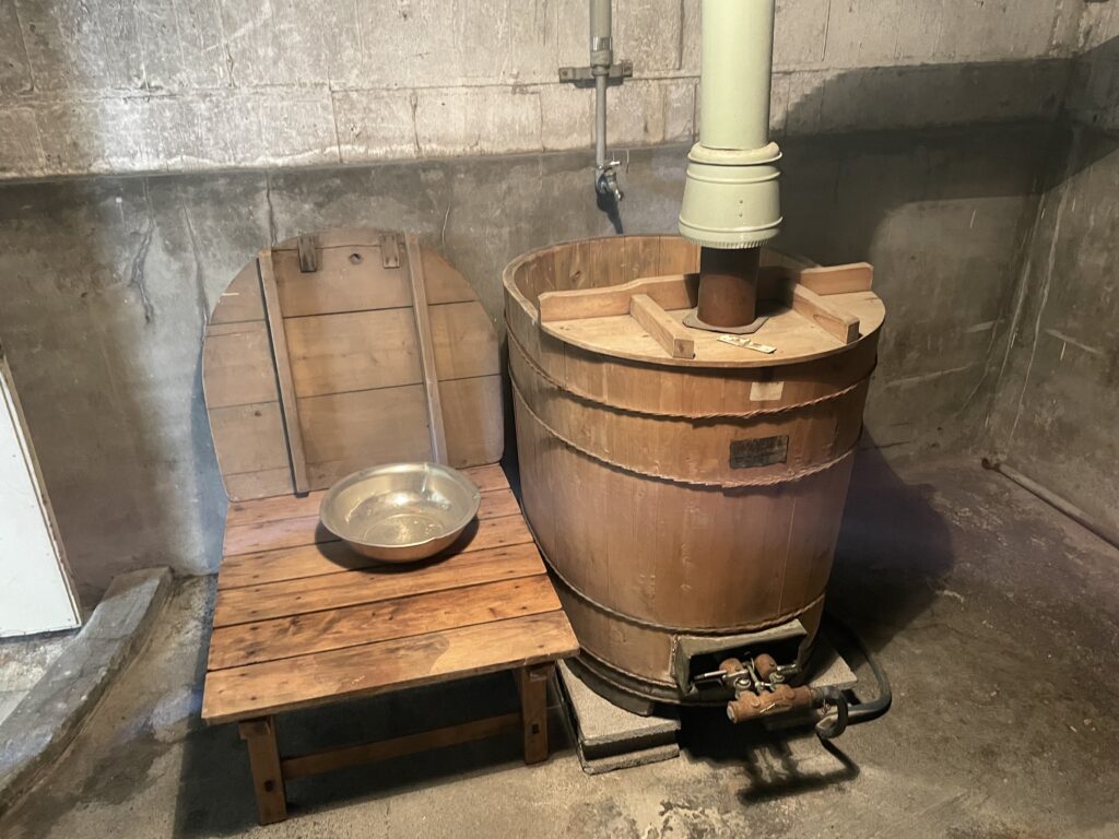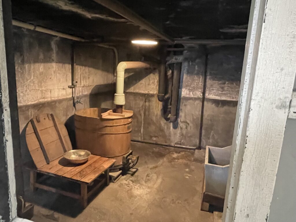 せま~~い!!桶にお湯をためて浴びるような感じでお風呂に入っていたそうです。