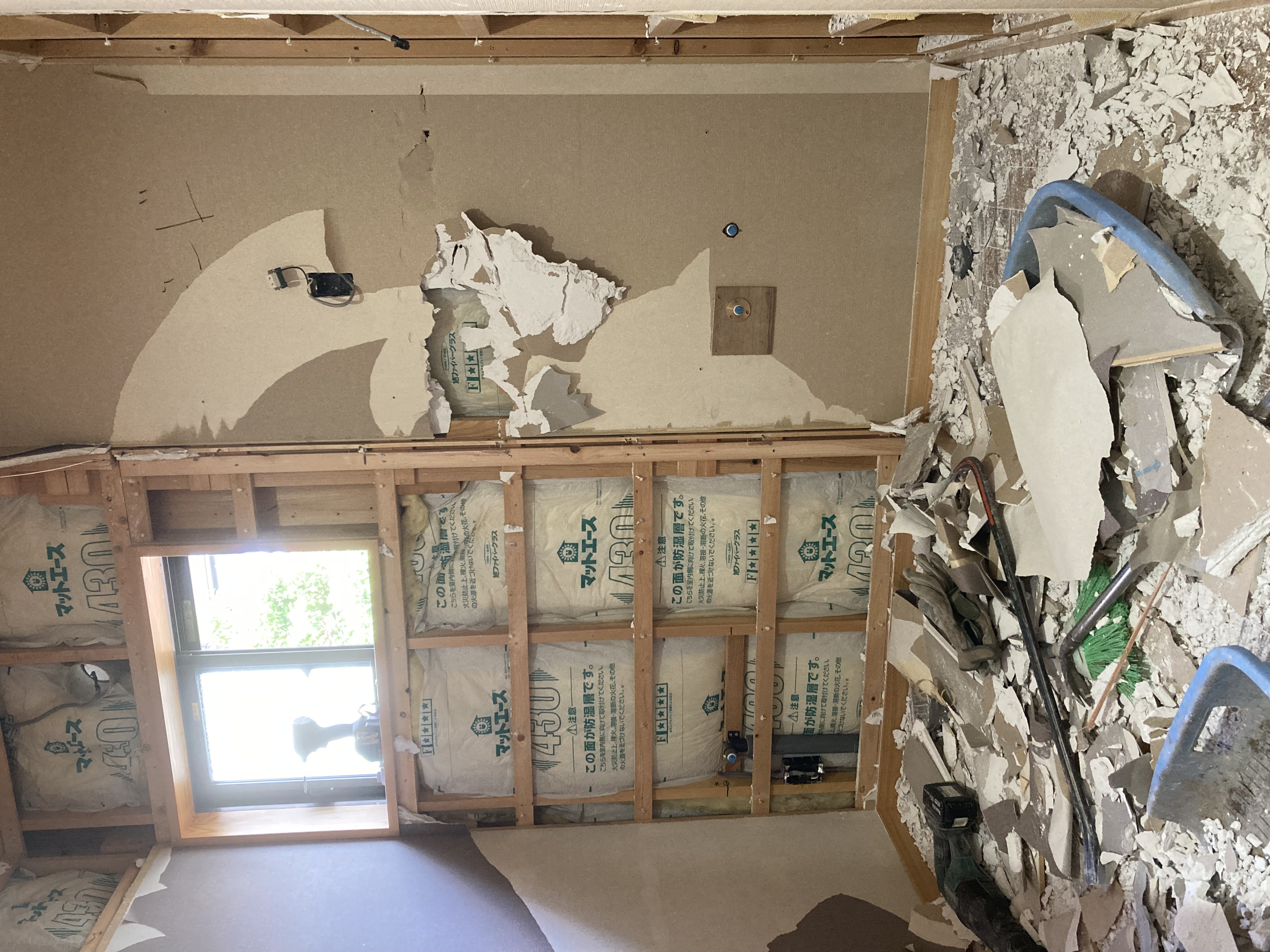 入り口も歩行器で入りやすいように場所を移動するので、壁も一部取り壊します。