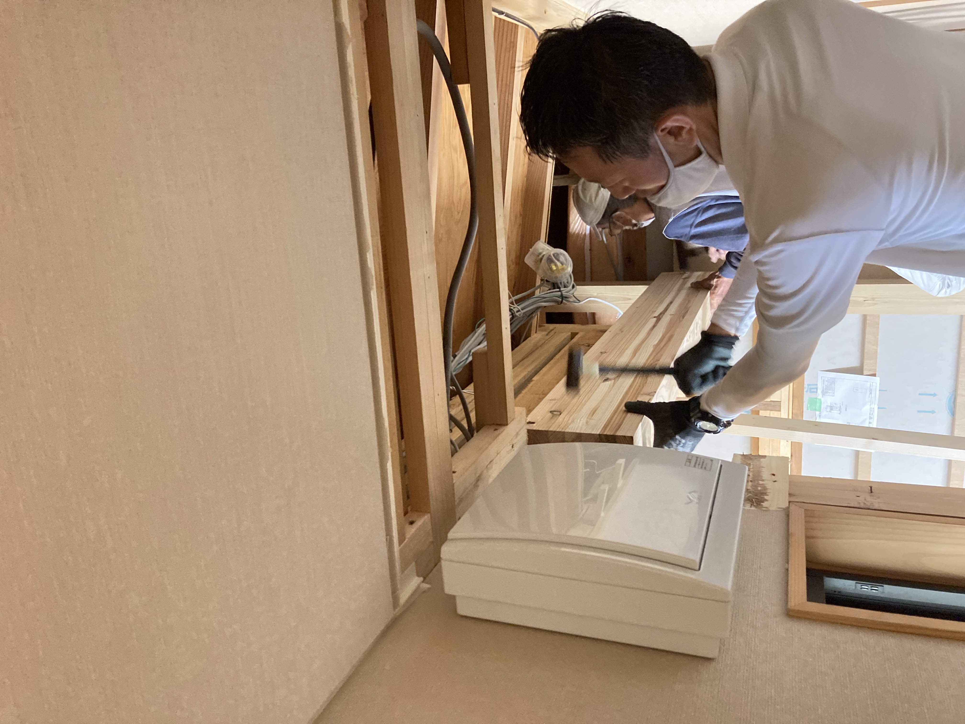 既存の柱を撤去したら、今度は補強のために梁を入れます。