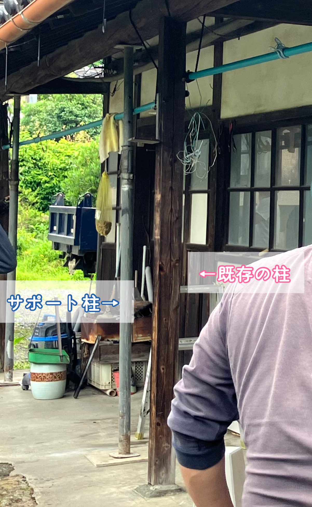 既存の柱の代わりとなるサポート柱を入れて、建物を支えます!