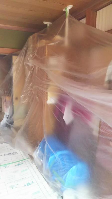 では、建物本体の解体に進みましょう。まずは残す部分を丁寧に養生します。